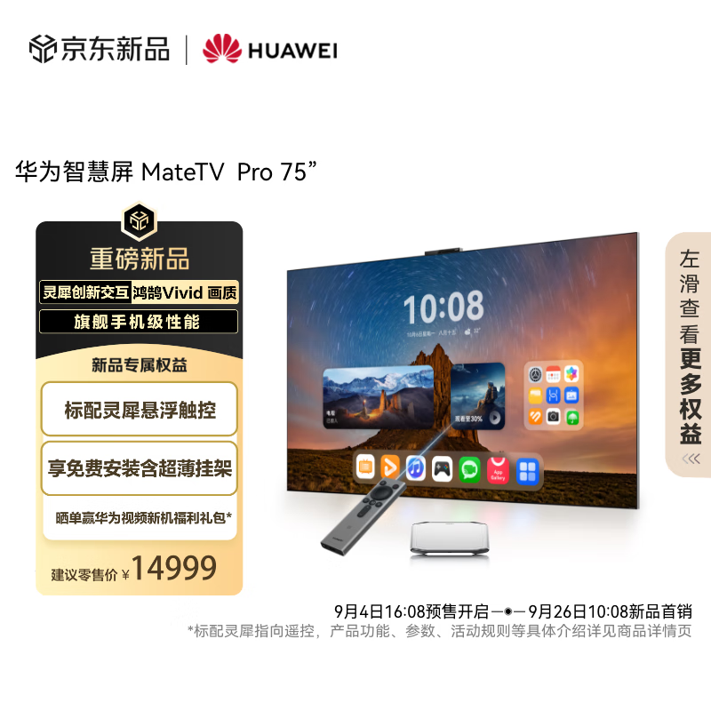 现已开启预售,预售本事享免费装配 *(含超薄挂架),且可领 800 元限时券。